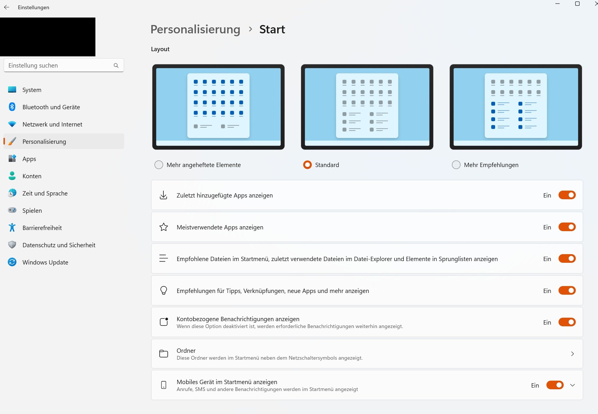 In den Gruppenrichtlinien (Lokaler Computer -> Computerkonfiguration -> Administrative Vorlagen -> Systemsteuerung) bez. ¨Alle Einstellungen¨ ist nichts aktiviert. In den Einstellungen unter Personalisierungen - Start ist alles auf Standard eingestellt.