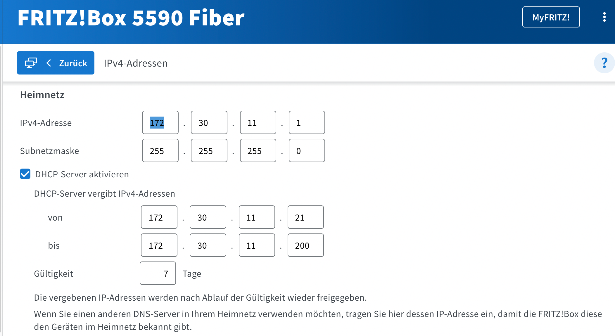 Ich hatte vor einigen Tagen ein Gerät im Heimnetz mit der fixen IP 172.30.11.25 (ein Notebook). Das Gerät wurde ersetzt und das neue Gerät soll jetzt wieder diese IP bekommen - also die 25