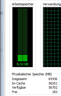 Es werden in den Systemgerätespezifikationen, im BIOS, in dxdiag und in CPU-Z stets 8GB Ram angezeigt. Laut Taskmanager bin ich bei ~3,8GB allerdings schon bei 100% Auslastung.