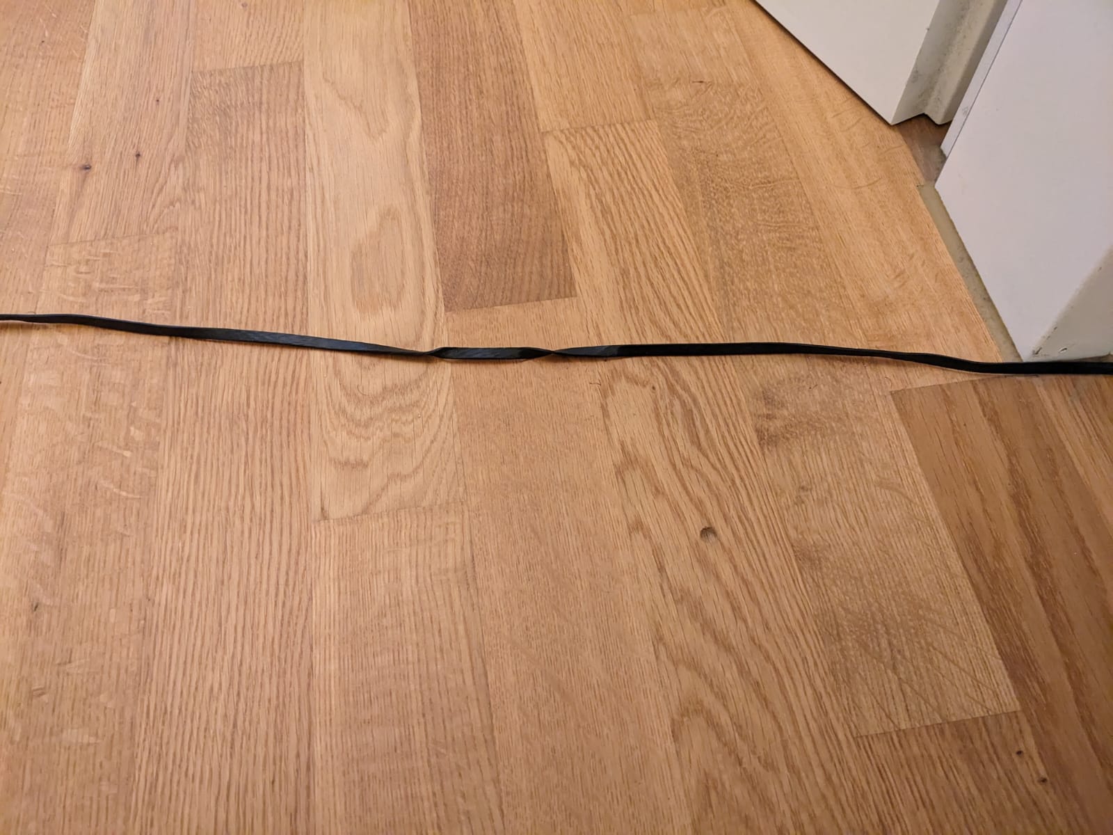 Ich hab zwischen zwei Räumen ein flaches LAN-Kabel liegen, welches von dort auch nicht verschwinden wird.