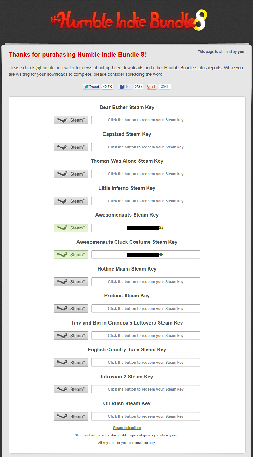 Das ist doch Quatsch, du bekommst über HumbleBundle zwei Lizenzen, je eine für Steam und eine für Origin (zwei Keys).Jesterfox schrieb:Ist zwar so eigentlich nicht gedacht (und strenggenommen somit illegal) da du nur eine Lizenz übers Bundle bekommst [...]