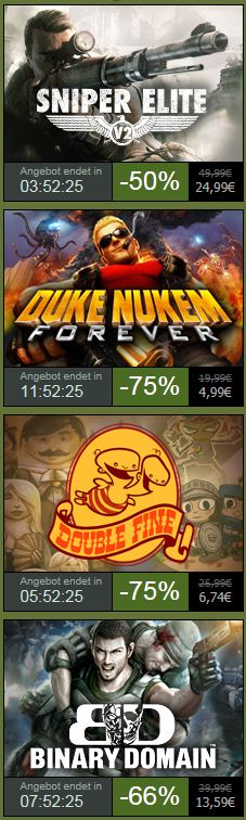 Der Summer Sale macht echt süchtig. Batman Arkham City und Saints Row 3 für knapp 10€. Skyrim für 25€. Sind ja Preise wie die Software Pyramide in 3 Jahren.