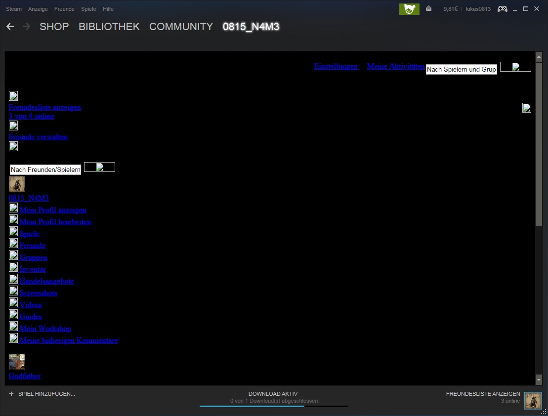 Wenn ich im Steamclient mein Profil aufrufen will dann wird immer nur eine Seite mit schwarzer Schrift auf schwarzem Untergrund amgezeigt, die man nur lesen kann wenn man die ganze Seite markiert.