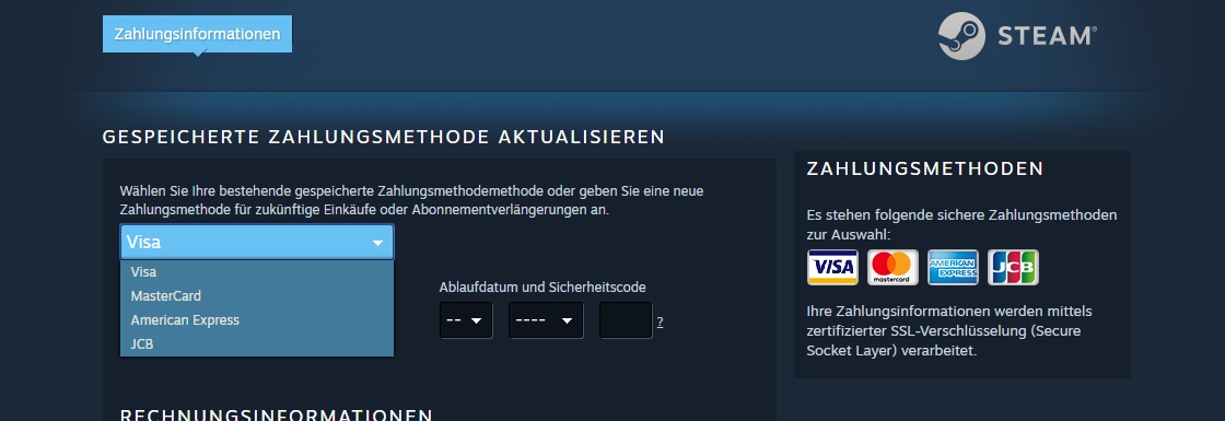 ich hoffe doch sehr, dass mir hier geholfen werden kann, da ich so bei google offenbar nichts finde wie ich meine Bank-kontodaten bei steam ändern kann, habe die bank gewechselt und steam will wohl offenbar immernoch von meinem alten Sparkassenkonto etwas abbuchen!