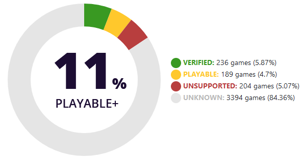 Von der Top-1000 auf Steam sind bereits 40% offiziell "playable" oder "verified":