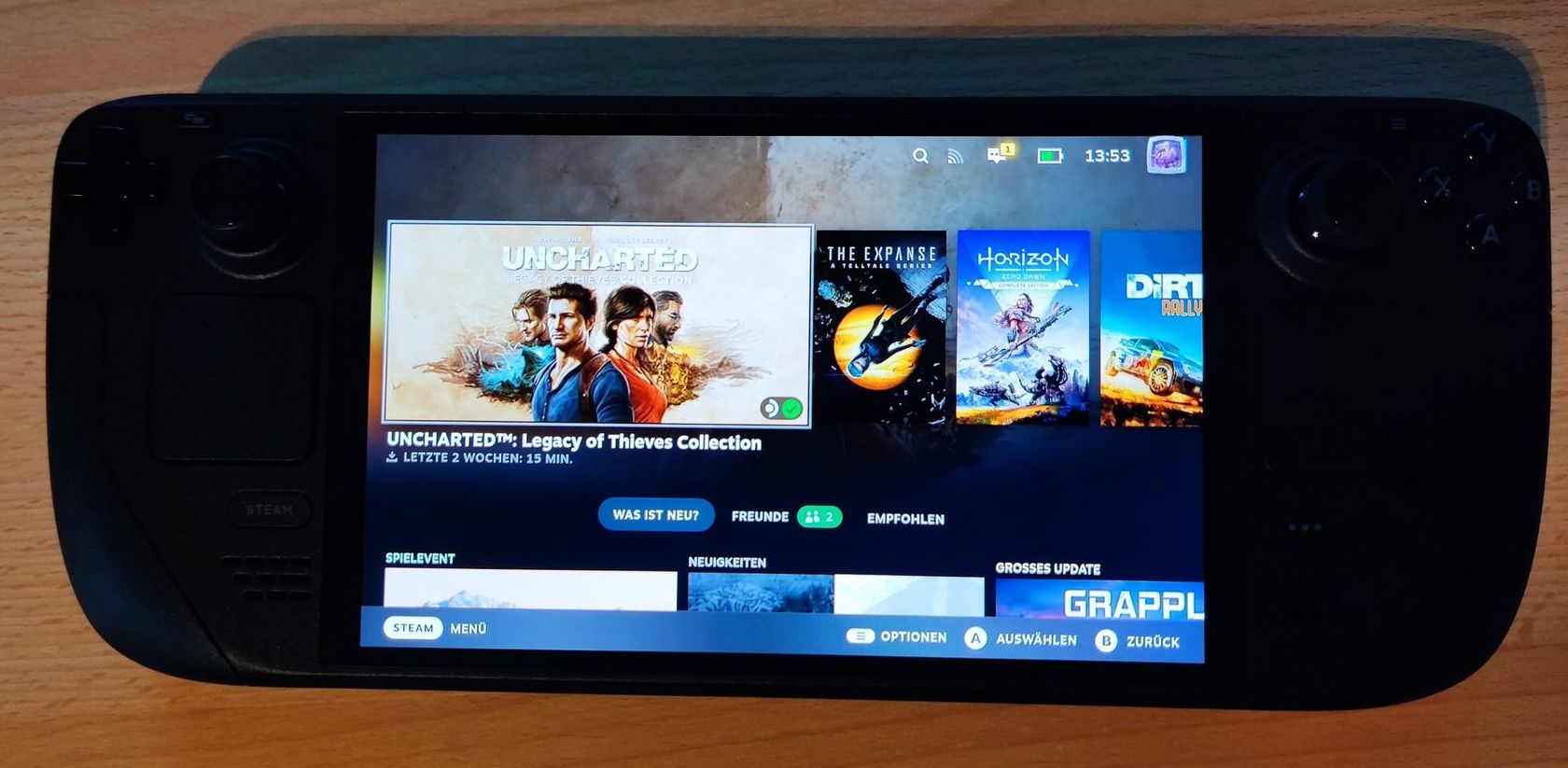Nicht so gut: Alle Input-Profile auf Default zurückgesetzt – also in der Cloud sind sie schon noch, aber man muss sie erstmal reaktivieren. Die Sticks driften früher als die GuliKits im alten Deck, also Deadzones wieder hochziehen, seufz.