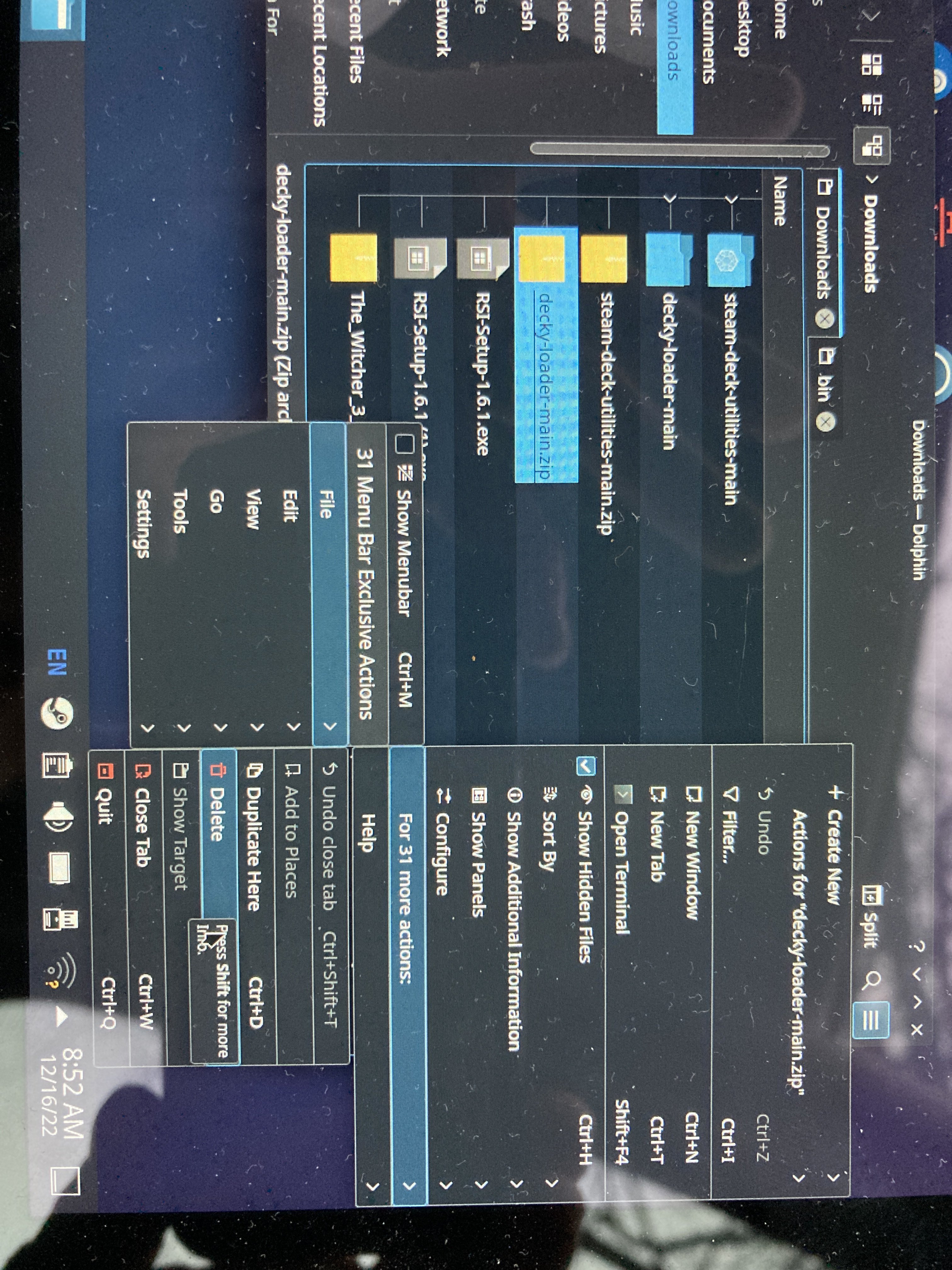 Hast du es über die Konsole mit dem Befehl „rm“ probiert? Geht natürlich nur komfortabel, wenn du eine Tastatur nutzt (edit: Du kannst in Dolphin, dem Datei Manager von SteamOS, mit der rechten Maustaste auf das Verzeichnis klicken, in dem du Dateien/Unterverzeichnisse löschen willst und im Kontext-Menü "mit Konsole öffnen" auswählen. Dann bist du in der Konsole bereits in dem passenden Verzeichnis. Nachdem du dann den Befehl "rm" eingegeben hast und die ersten drei, vier Buchstaben der Datei/des Verzeichnisses, das du löschen willst, kannst du [Tab] drücken und der Dateiname wird automatisch ergänzt - das ist ganz praktisch, wenn man sich die Tipperei sparen will. Oft gehen Terminal-Befehle unter Linux besser als GUI-Anwendungen, die sich bei Problemen quer stellen oder die Funktionalität nicht mitbringen)