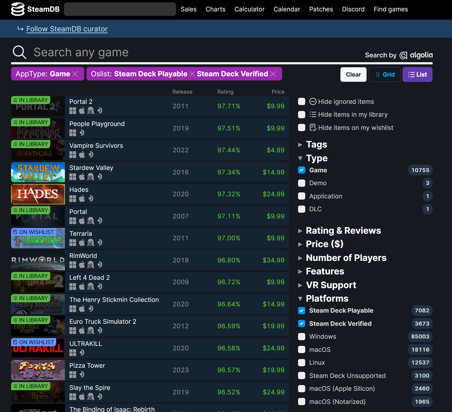 Das sind aber recht alte Vergleichszahlen.SilkBot schrieb:Manche Leute wollen einfach ihre Spiele unterwegs spielen, und die Switch hat mit ihren 4.500 Spielen einfach eine deutlich kleinere Auswahl als am PC mit über 50.000 gelisteten Spielen alleine auf Steam. Womit natürlich auch ein Punkt ist: Der PC hat die meisten exklusiven Spiele von allen Plattformen, und für so manchen dürfte ein Steam Deck sogar der erste Gaming-PC sein.