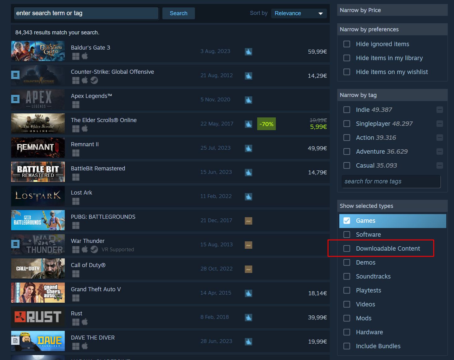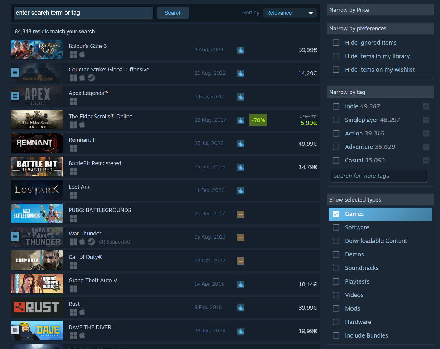 Auch die Anzahl der Steam-Spiele ist mittlerweile auf 85.000 Windows-Spiele angewachsen, von denen ca. 84.300 Spiele mit deutscher IP erhältlich sind: