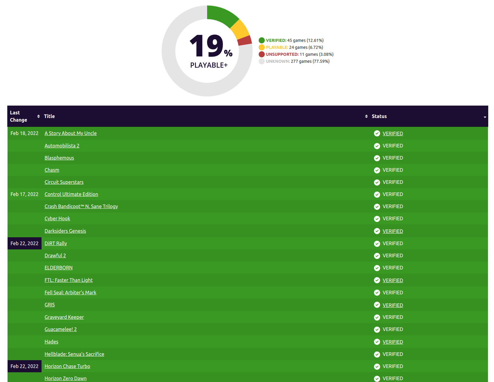 Darunter sind nämlich auch Spiele wie Watch Dogs 2, die problemlos laufen und nur der Multiplayer nicht wegen EAC läuft. Oder auch Outlast, das eigentlich sogar nativ läuft, aber vermutlich zu kleine Schriften oder Probleme mit Controllersteuerung hat.