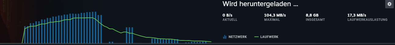 Hi, meine Downloads über Steam verlaufen sehr seltsam. Sie starten erst sehr schnell mit um die 100mb/s und haken dann sehr seltsam ab und werden sehr langsam. Ich schicke dazu einige Bilder. Meine SSD ist während Steamdownloads meist 100% ausgelastet, um die 30% von Steam und 70% vom System. Ich hatte das Problem auch schon auf meinem alten PC. Meine SSD hat eine schnellere schreib und lese Geschwindigkeit als mein Download-Speed. Das ganze Problem tritt nur bei Steam auf. Origin, Uplay etc. Downloads laufen einwandfrei.