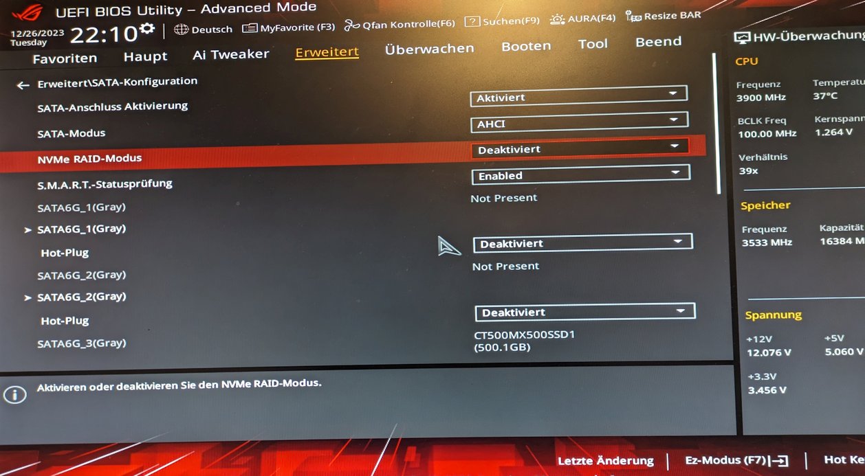 Das zeigt nur die SSD, nicht die Controller-Einstellungen. Musste woanders suchen.
