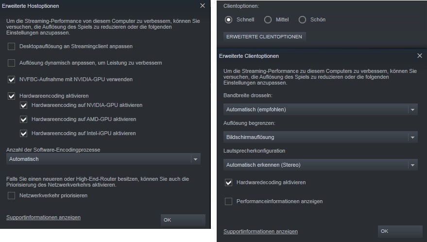 Sämtliche Steam Stream Einstellungen durchgespielt.