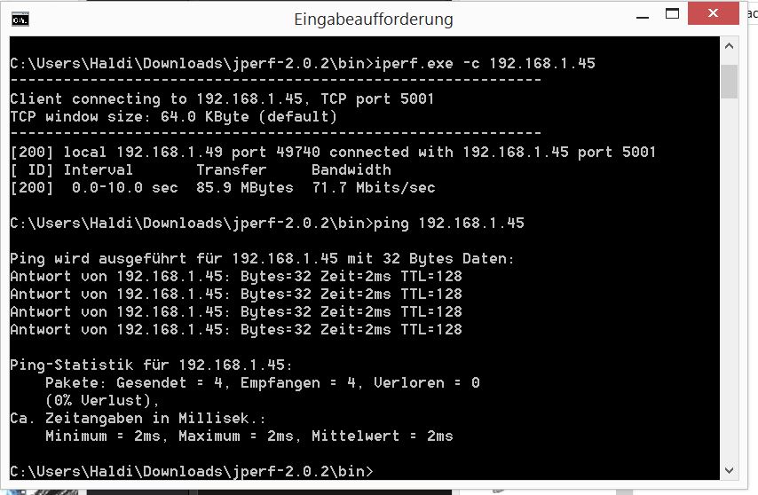 über Wlan ist die Latency 1A ca 1MS oder weniger, über WLan schwankt es zwischen 8 und 25ms je nach dem. Der Ping schwankt auch mit.