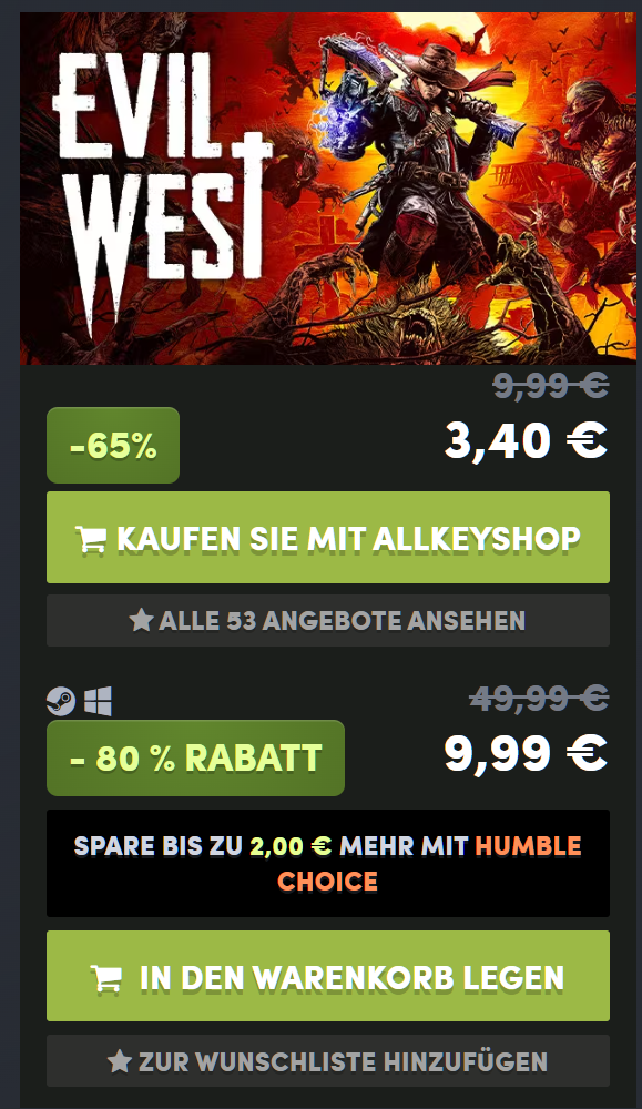 Ich glaube das Spiel habe ich seit Release vor fast 3 Jahren nicht ein Mal für Vollpreis bei Humble gesehen. Es war ja auch schon einige Male in Sales bei Steam und Epic sowie diversen Bundles drin.
