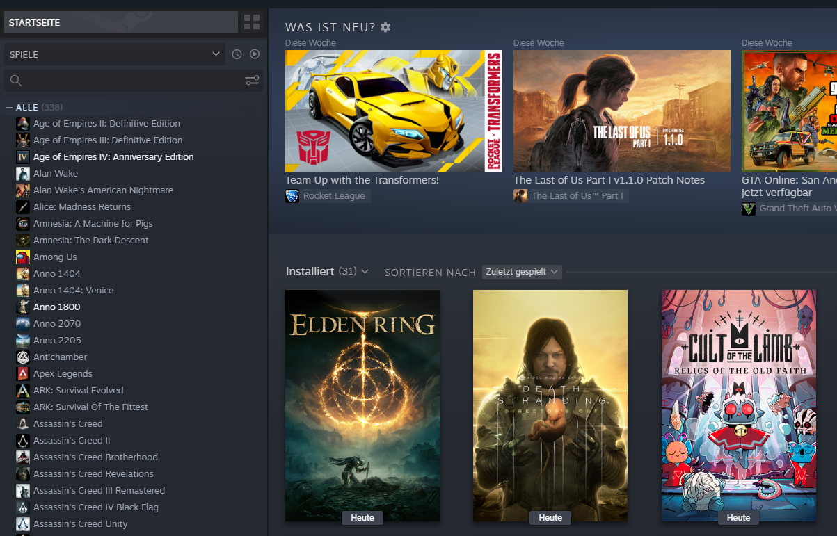 Vor dem Update war mein Steam Fenster kleiner und ich hatte alle meine Spiele in der Liste angezeigt (viele ausgeblendet)