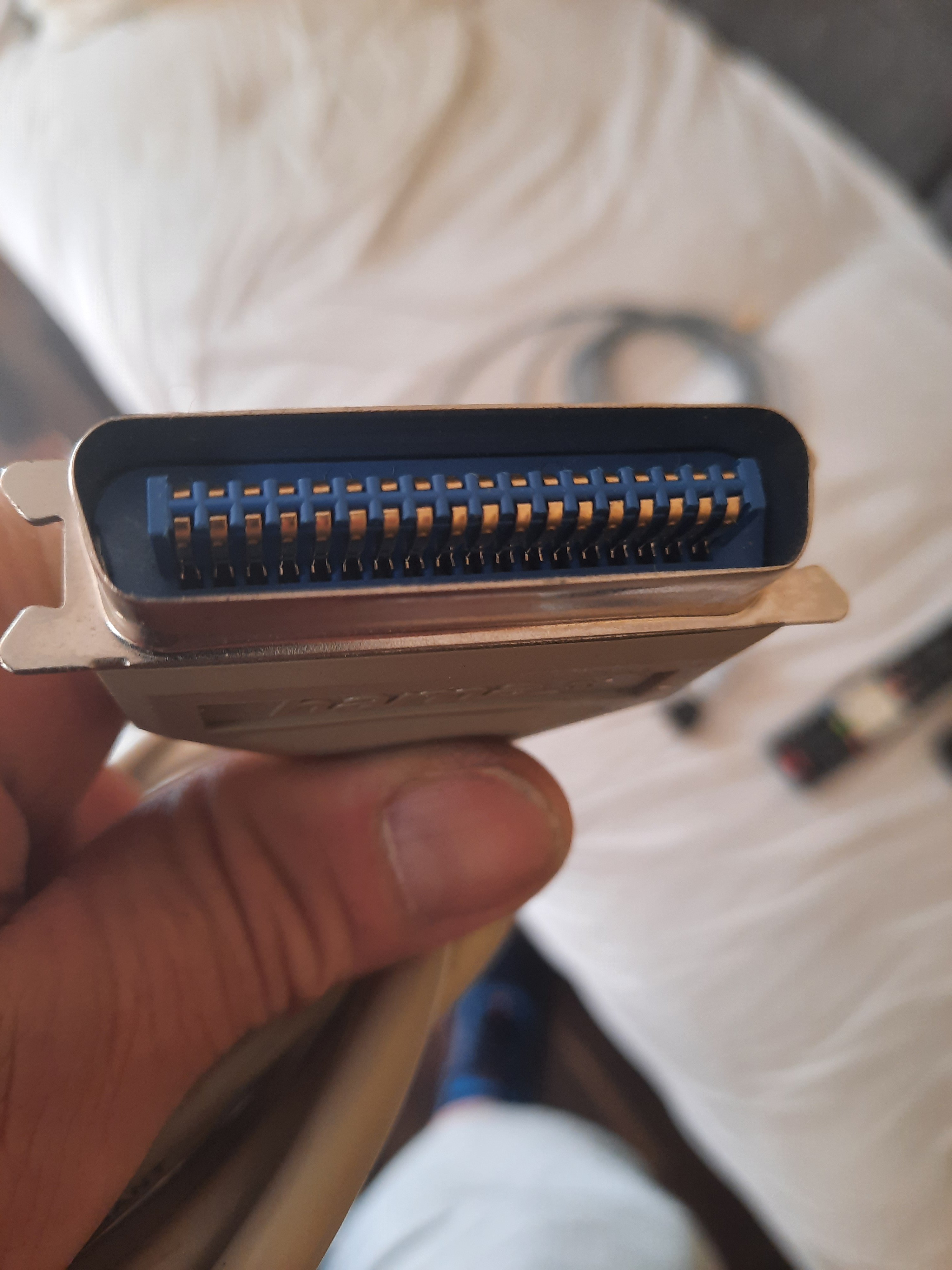 jo, links ist Centronics parallel Port (hatte früher die IBM Monochrom oder die Hercules GraKa als Sub-D Ausgang ), das hier ist das Ende für den Drucker.