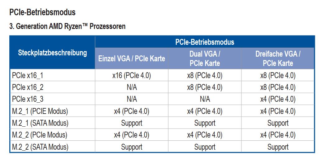 und nicht auf PCIe x16_1. In dem Handbuch steht unter Erweiterungssteckplätze zum PCIe-Betriebsmodus