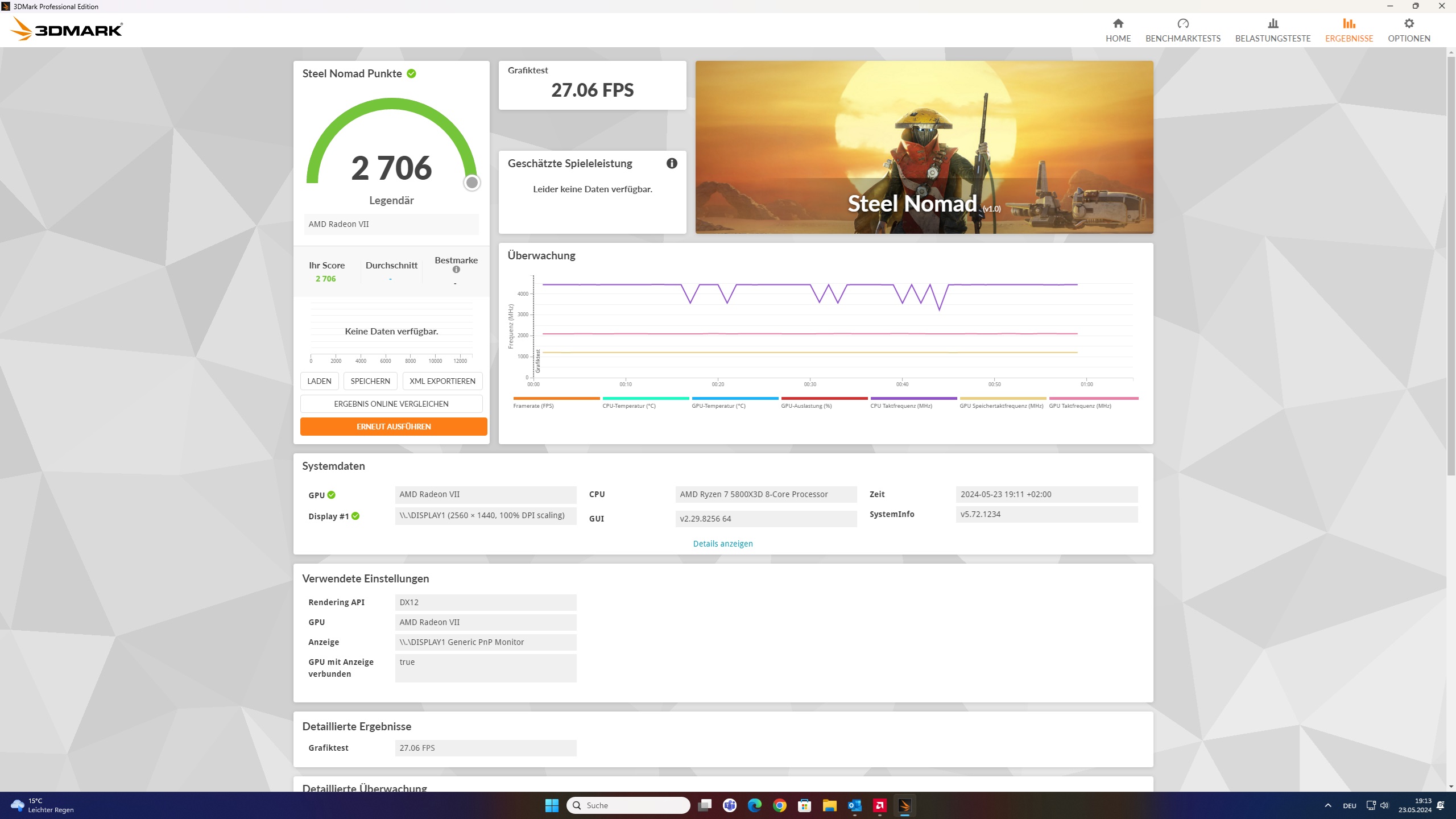 Mein Ergebnis mit Steel Nomad Standard Vulkan erscheint mir nicht plausibel, weswegen ich es auch nicht angegeben habe, da krebst meine 6500 XT 4 GB mit 2.2 Fps herum, während DX12 bei 7.9 Fps liegt, das sollte ja eigentlich anders herum der Fall sein.