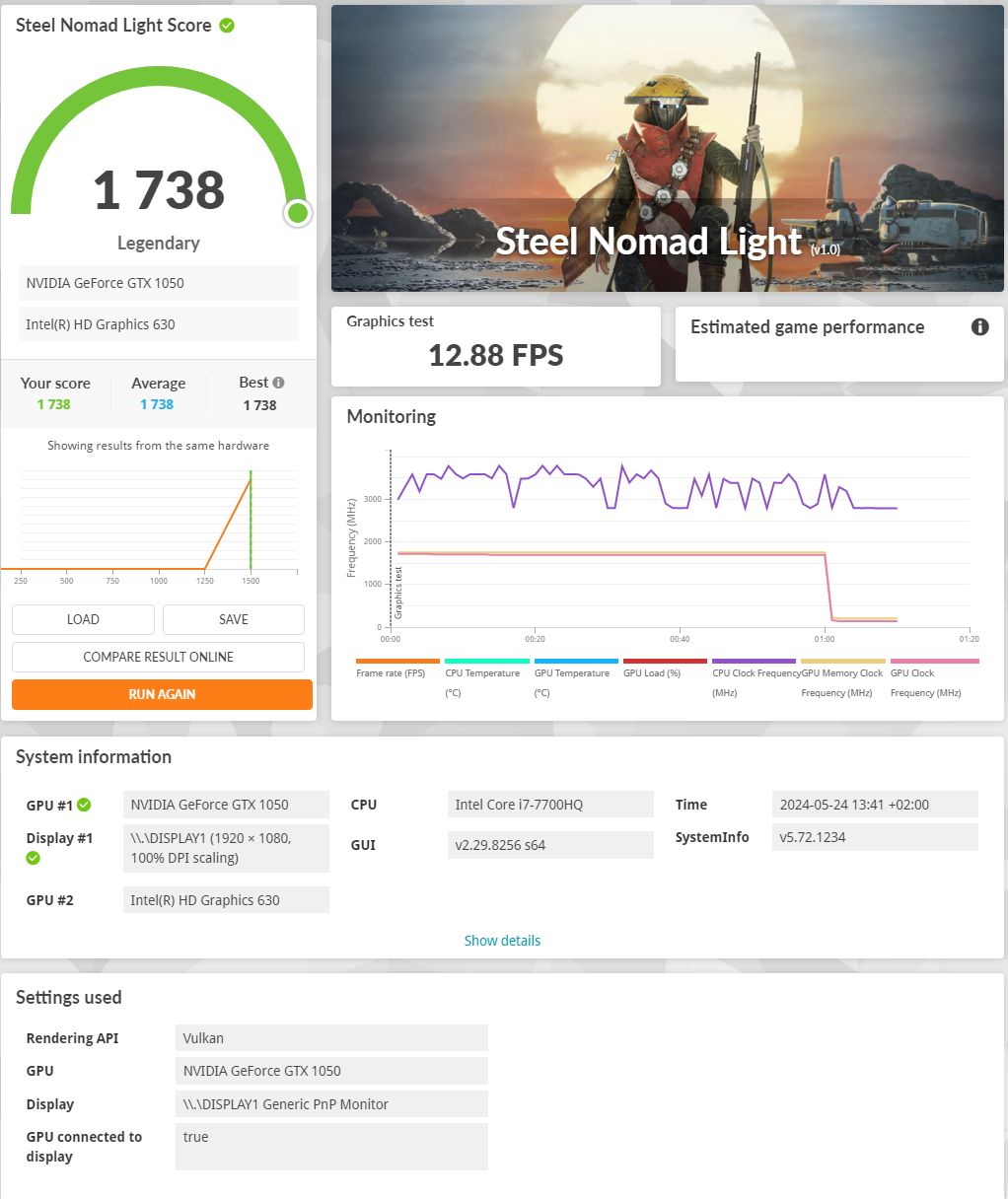 3DMark Steel Nomad Light – Vulkan: 1738
