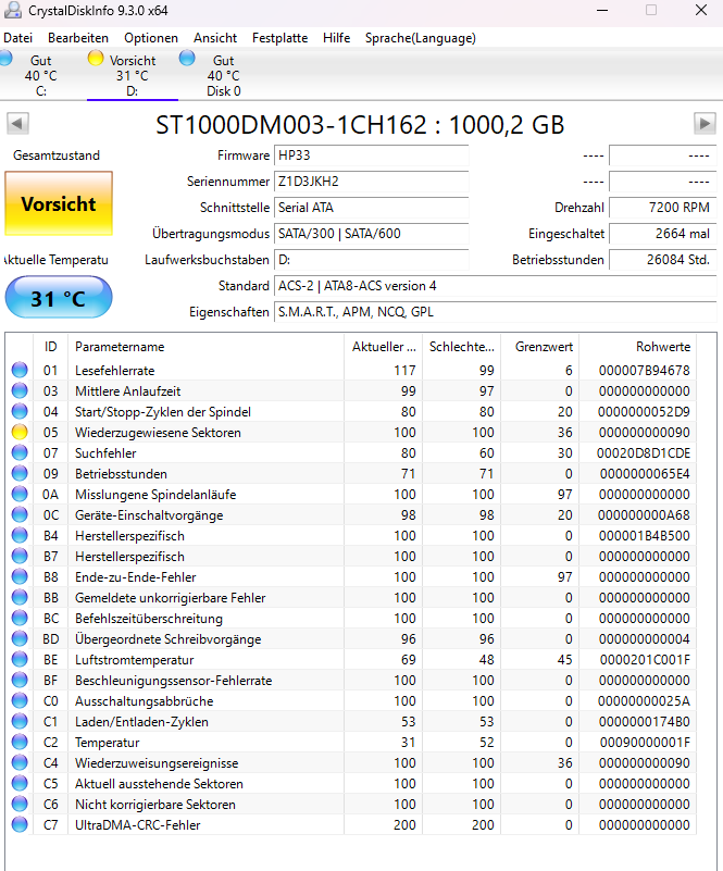 Steht diese Festplatte wirklich vor einen Defekt?