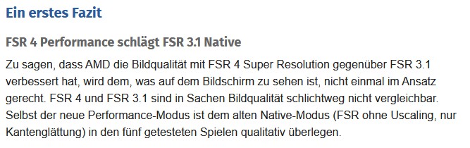 Interessant, wie sich die Meinung plötzlich ändern kann. Ich erinnere mich noch gut, kann ja jeder selber nachlesen, dass längere Zeit hier in Tests propagiert wurde, dass upscaling, ob nun FSR oder DLSS, native zu bevorzugen sei weil in der Regel eine bessere Bildqualität. Dazu die üblichen Kommentare wie "native ist Geschichte, rückständig, yadayada". Nun ist es, zumindest auf AMD bezogen wenn ich das richtig deute, nur bei FSR 4 der Fall. Soll das noch einer verstehen. Glaubwürdig und überzeugend ist es zumindest nicht.