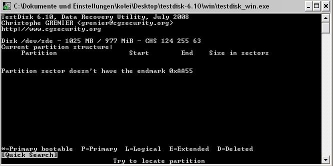 Starten von TestDisk_win.exe