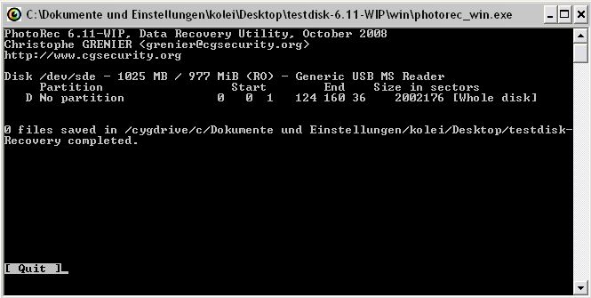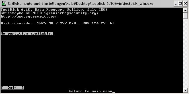 Du darfst dann Testdisk nicht beenden da du dann die Einstellungen verlierst.