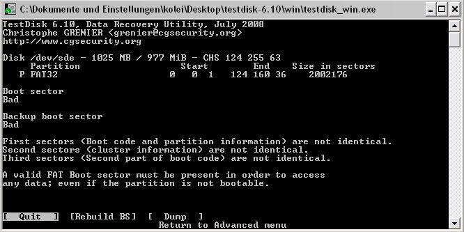 Gehe dann auf Rebuild BS und setze mir hinterher einen Screen. Hinterher zeigt Testdisk das Ergebnis an.