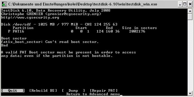 der Rebuild BS ist auf FAT16 jetzt nach knapp 2 Stunden durch, nun durchsucht er irgendwelche subdirectorys. Da tut sich jetzt seit ca. 15 min nichts, lasse es aber mal weiter laufen oder?