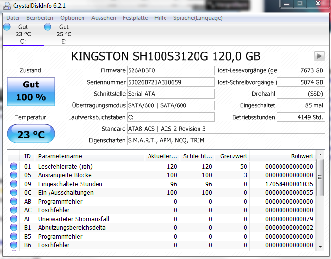 Bei einer älteren Samsung HDD waren es total falsche Werte, und auch bei meiner jetzigen SSD zeigt es keine korrekten Werte an.