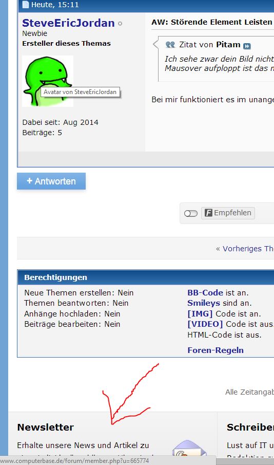 Ich sehe zwar dein Bild nicht weil nicht korrekt freigegeben, aber wenn du unten Links die URL meinst welche bei Mausover aufploppt ist das normal und es gibt keine (mir bekannte) Möglichkeit das abzuschalten.