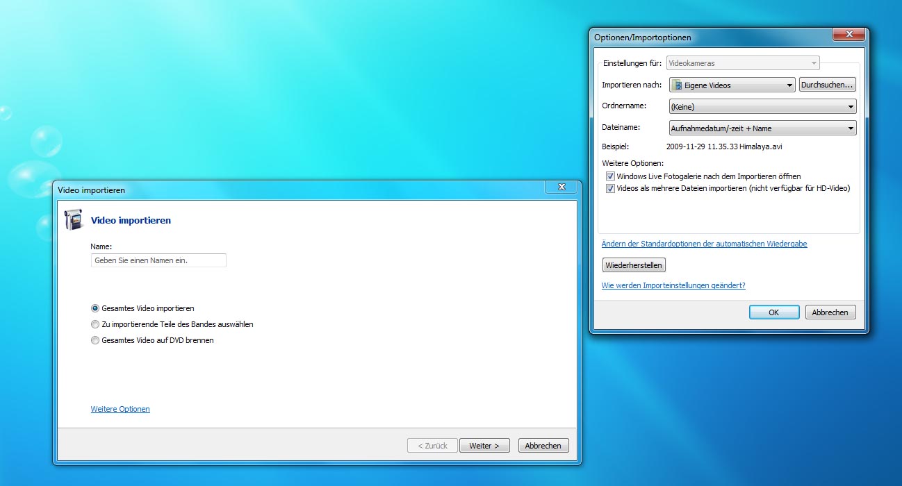 Ich habe es unter Windows 7 irgendwann aufgegeben und XP gestartet. Hier wurde die Kamera vom MovieMaker gefunden, unterstützt und die Aufnahme nach Auswahl gestartet.