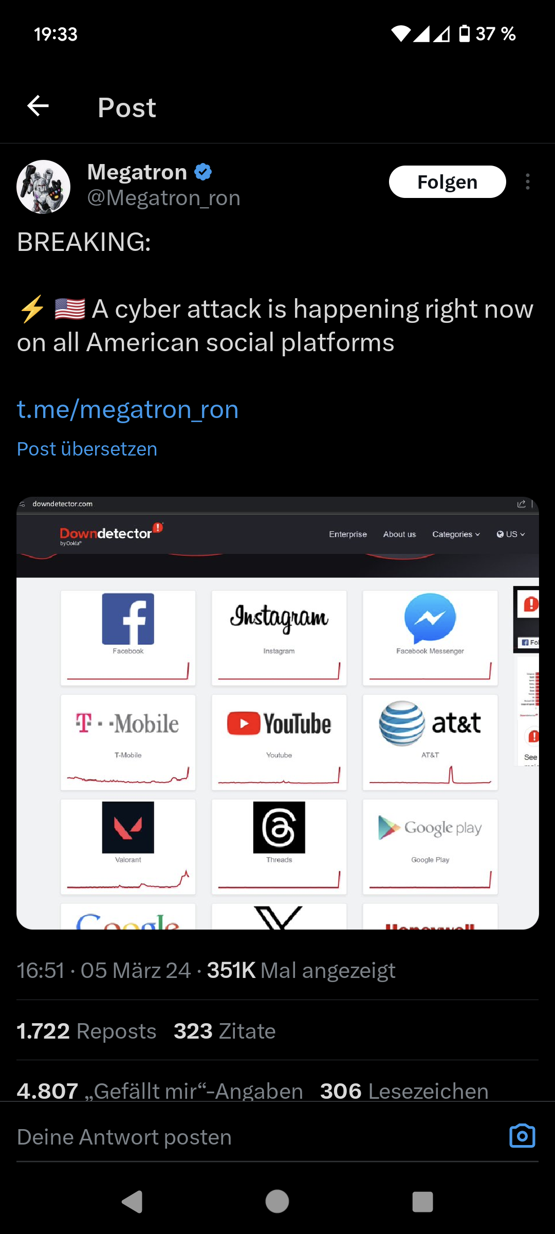 Das wäre mal ein gutes Zeichen für die Menschheit - dazu dann noch Twitter / TikTok usw. Und die Menschen müssten sich wieder (draußen) treffen und interagierenBlaexe schrieb:https://downdetector.com/