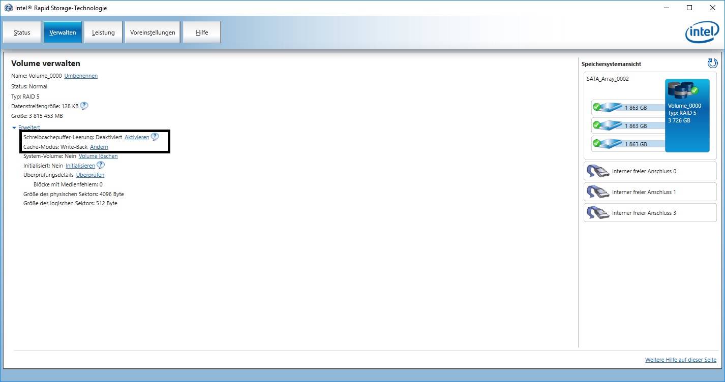 Ich bin jetzt von 2016 eval auf Win 10 umgestiegen und habe jetzt mal das unpartitionierte Raid 5 (6 Platten gehen rein und können anscheinend verwendet werden).