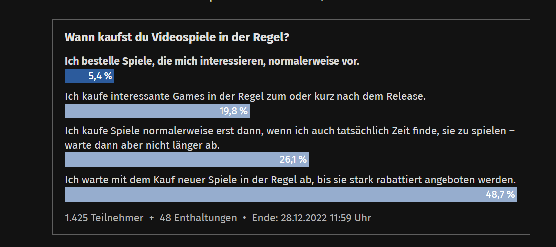 bei der frage "Welche Games-Abonnements für PC-Spiele hast du in 2022 genutzt?" fehlt irgendwie die antwortmöglichkeit "keine" um ein realistisches bild zu erhalten...