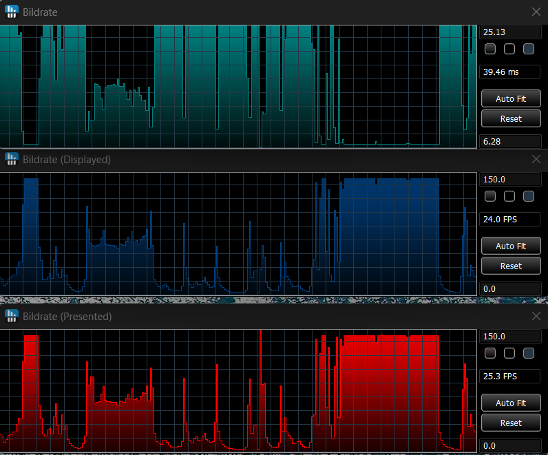 Ich habe Tests gemacht um das erzeugte Bild pünktlich dem Monitor bereit zu stellen mit "Riva-Tuner" oder auch versuche mit "Radeon Chill", ich habe hier jeweils die maximale Framerate unterhalb der Bildschirmfrequenz gesetzt, kein Erfolg.