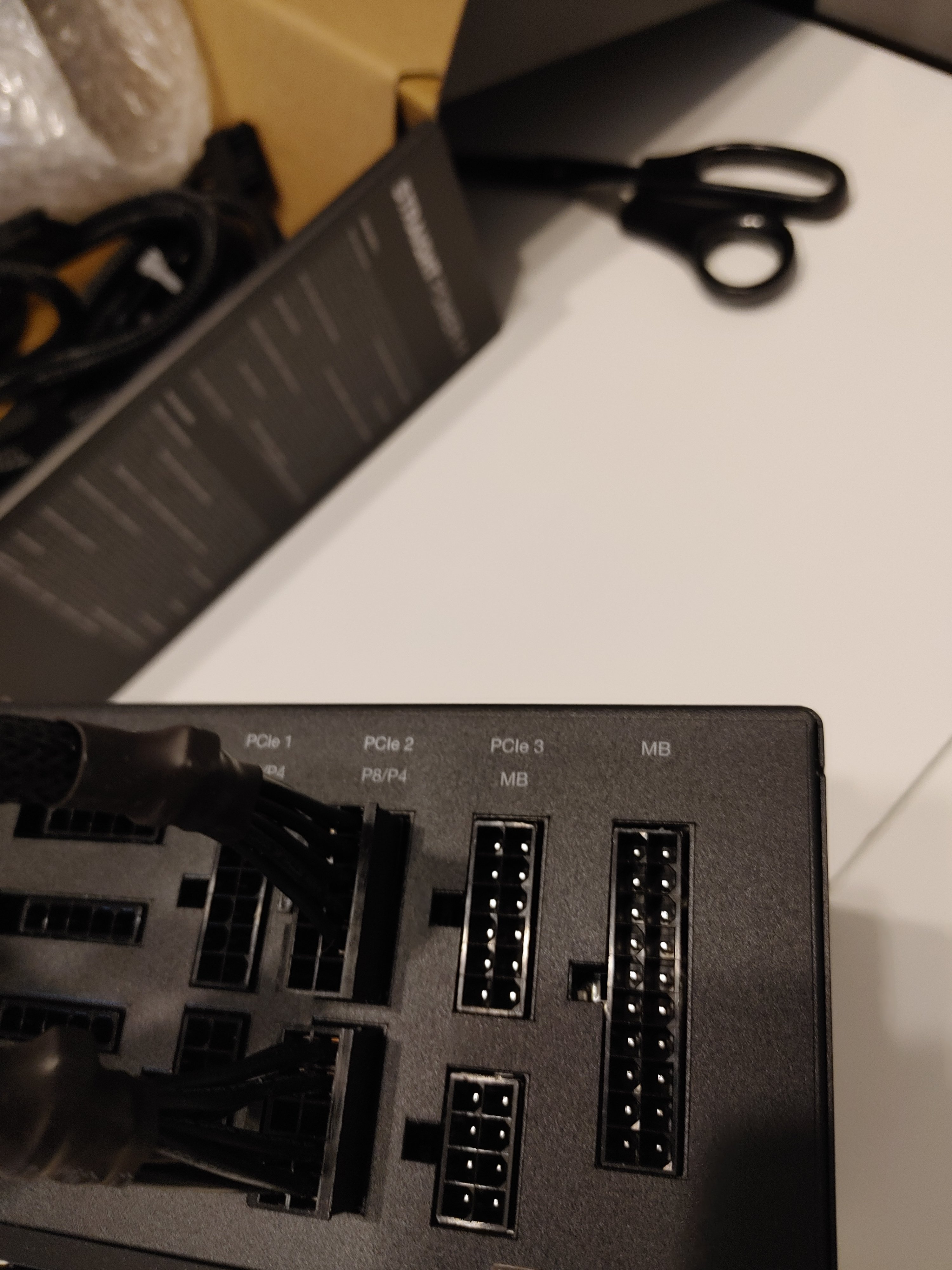 Zur Netzteilseite hin gibt es zwei Stecker, die beide in "MB" (steht ja auch fett dran) gehören. Das sind ein 20-Pin-, und ein 8-Pin-Stecker. Ich empfehle Dir dringend, Hilfe bzw. Unterstützung durch jemanden erfahrenen vor Ort zu suchen, wenn Du so unsicher bist. Nachher kann das ein teures Lehrgeld werden.