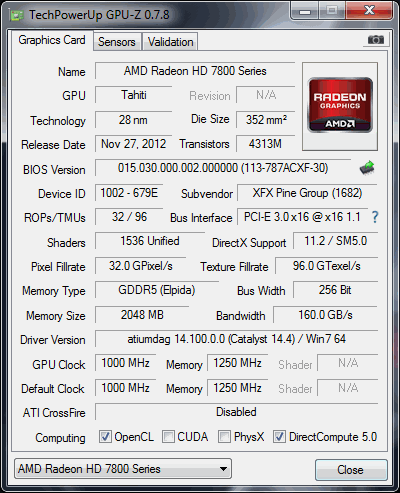GPU: XFX 7870 GHz 6+8Pin (mit Thaiti Kern, also höhere Leistung, aber auch mehr Verbrauch als "normale" 7870 Pitcrain)