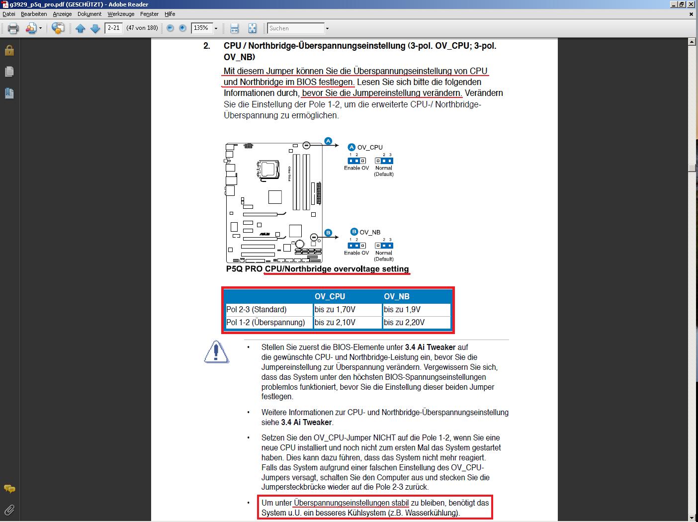 bist Du sicher, dass das da steht, wenn Du auf "DRAM Voltage" bist und nicht auf "CPU Voltage"? Wie auch immer: Der OV_CPU-Jumper muss nur dann umgesteckt werden, wenn Du der CPU mehr als 1,7 V geben möchtest. Sofern Du nicht mit Flüssigstickstoff kühlst oder Deinen Prozessor grillen willst, ist dieser Jumper für Dich also völlig irrelevant.