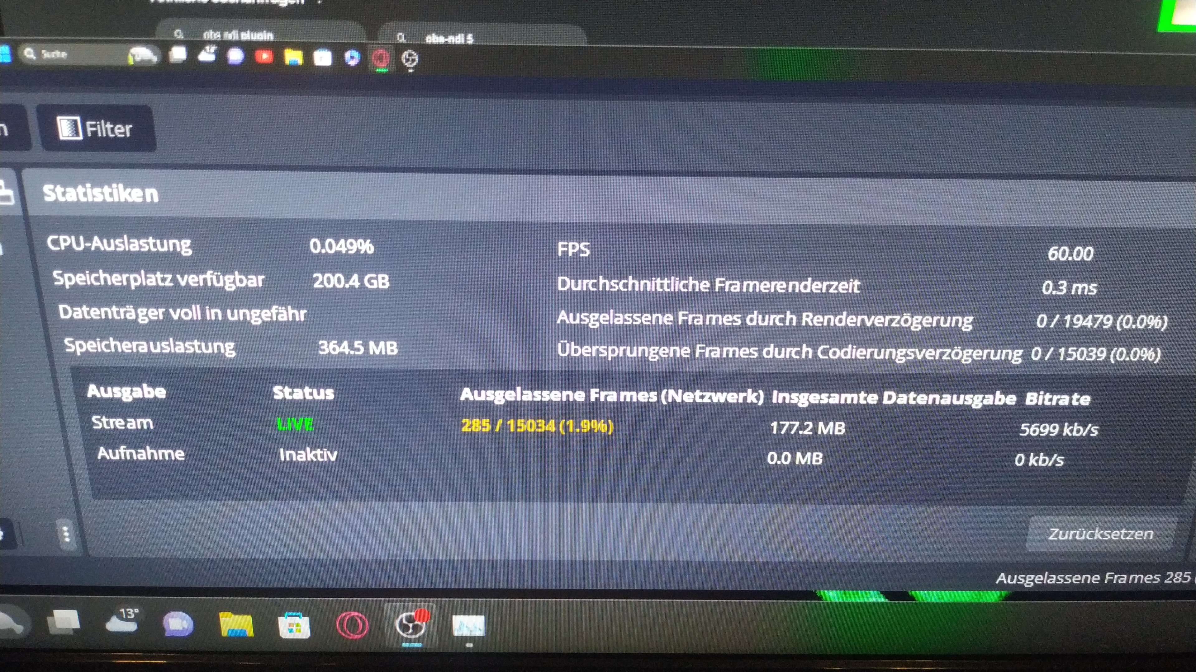 Ich möchte mindestens in 720p 60fps streamen. Sofern möglich möchte ich über die CPU encoden!
