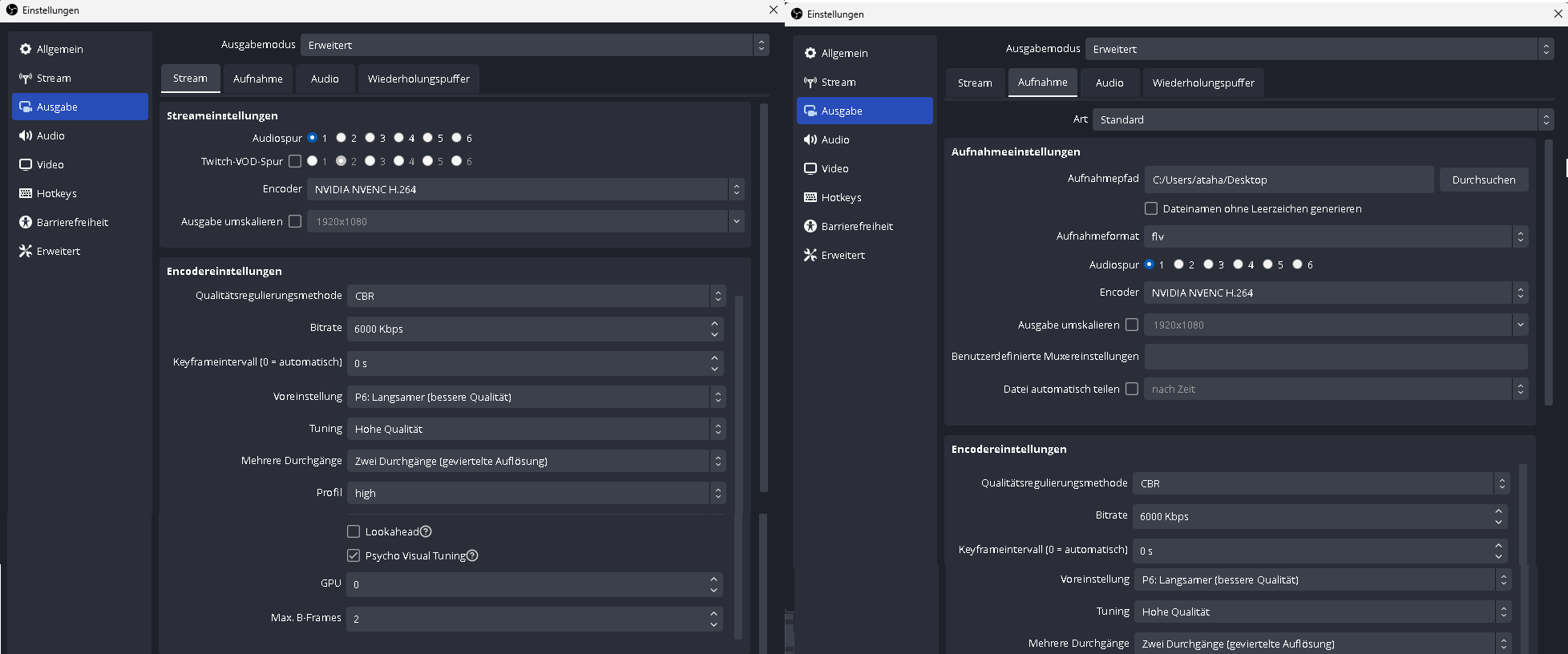 Falls nötig kann ich gerne auch die OBS Settings anfügen.