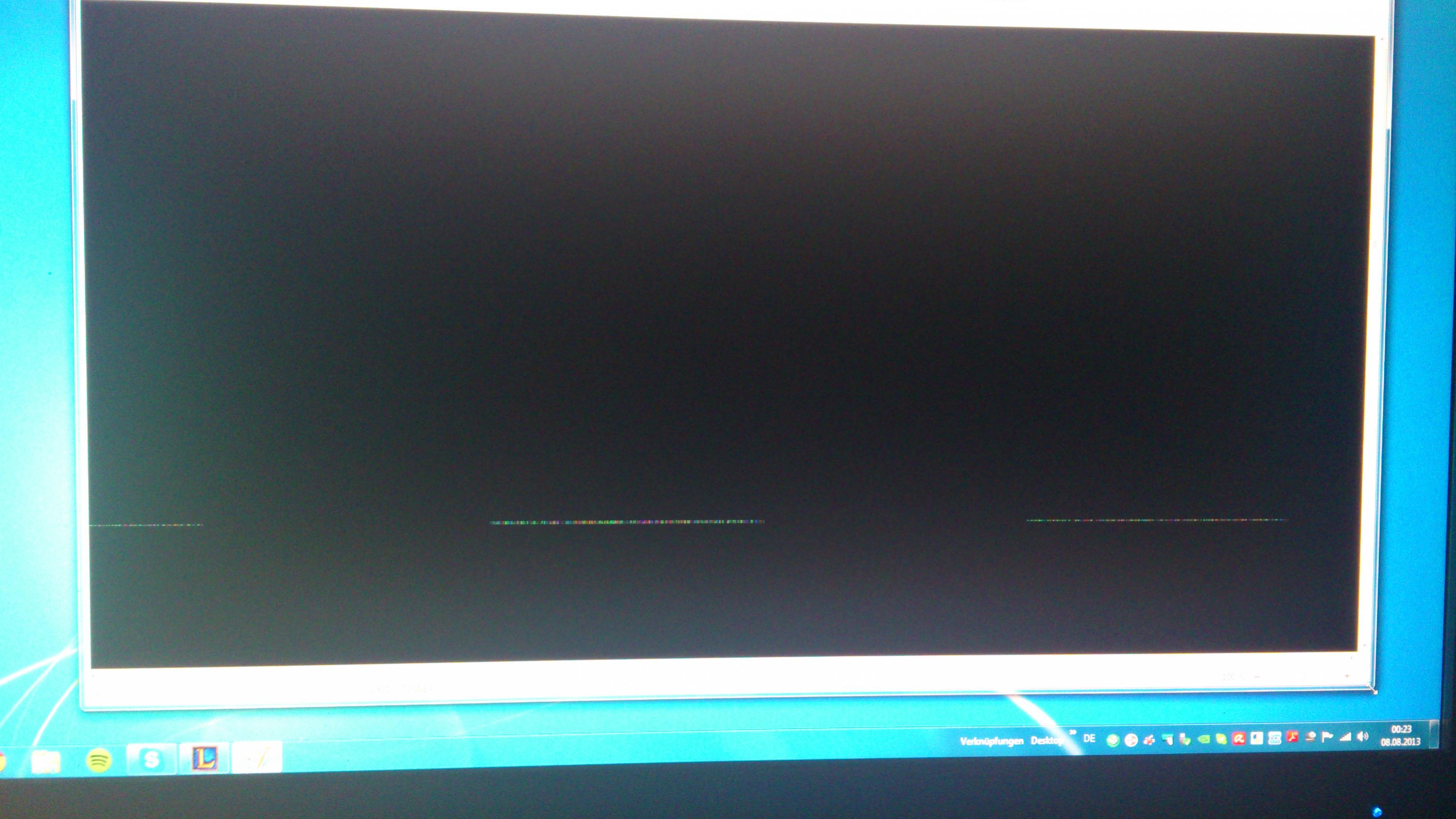 Ich bin mit meinem Latein am Ende. Ich fahre meinen PC wie gewohnt hoch und schalte meinen Monitor (Hyundai IT W240D DVI) ein und sehe Striche die flackern. Ich finde das eigentlich nicht störend wenn ich im Internet bin oder Dokumente verfasse, dennoch fallen diese Striche beim betrachten eines dunklen Fotos oder Videos sehr auf und stören. Ich habe schon alle Anschlüsse an meinem Monitor sowie an meinem PC überprüft, alle Kabel sitzen tadellos. Was mir aber aufgefallen ist, ist dass wenn ich meinen Monitor anmache ich einen kurzen Blackscreen habe indem der Monitor die Daten von dem PC bekommt. In dieser Blackscreen-Phase sehe ich schon die flackernden Striche.