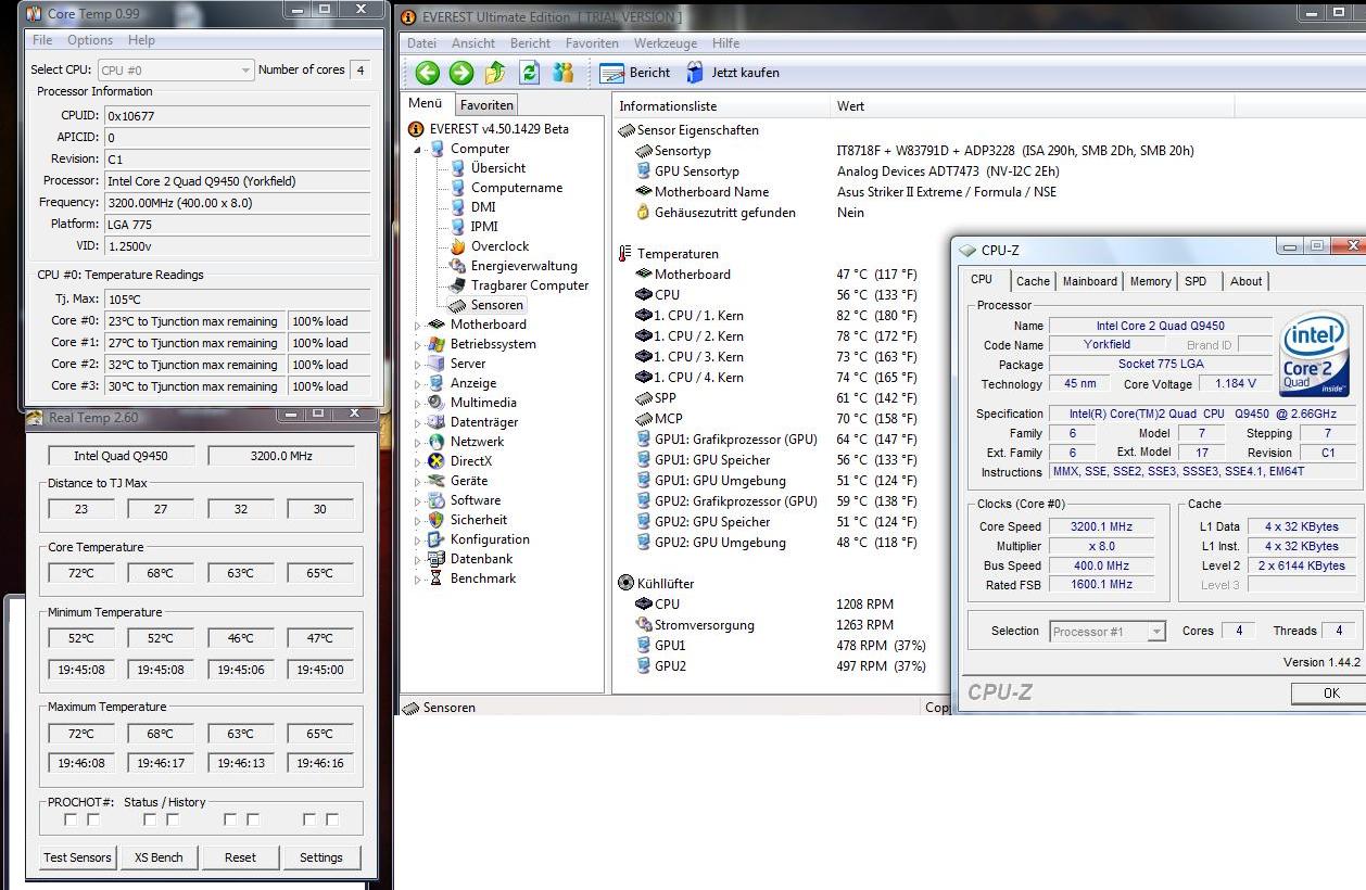 Also bisschen zurück, FSB@1440 (2,88GHz). Selbes Problem, nicht mal auf 1,3V Vcore stabil. Selbst bei Anhebung der SB Spannung auf 1,50V mag der nicht.