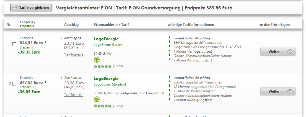 ich bin umgezogen und bin seit Mitte Dezember im Grundversorgungstarif des örtl. Anbieters. Gerne möchte ich wechseln. Der Grundversorger ist eon. Schaue ich dort auf dessen Homepage nach Tarif-Alternativen, finde ich preislich kaum Unterschiede. Vielleicht 1 oder 2 EUR im Monat.