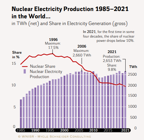 Weltweit sind zurzeit 422 Kernreaktoren mit einem Durchschnittsalter von rund 31 Jahren in Betrieb, 57 Blöcke werden aktuell gebaut, 204 wurden stillgelegt bzw. werden gegenwärtig rückgebaut. Die Zahlen zum Durchschnittsalter in diesem Text ergeben sich ab dem Tag des kommerziellen Leistungsbetriebs und geben den Stand Oktober 2022 aus dem „World Nuclear Industry Status Report“ (WNISR) wieder