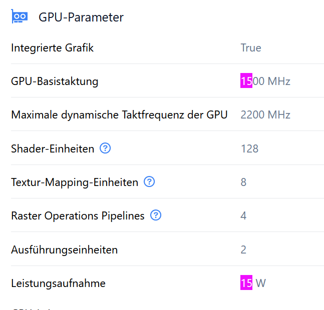 laut Hersteller nimmt die iGPU maximal 15W