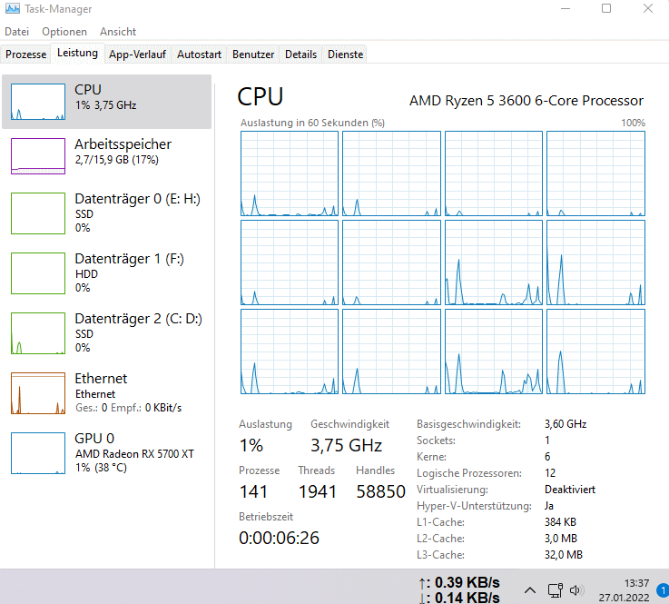 Ich zocke an sich recht wenig (2 - 3 Runden Hell Let Loose), ansonsten wird der PC für ARD-Mediathek, ZDF-Mediathek, Disney+, YouTube gucken genutzt.