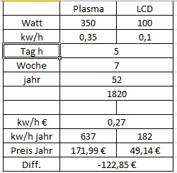 Hat den jemand ´Vergleichswerte zu einem LCD/LEd TV der selben Größe, bzw. 46-60"?