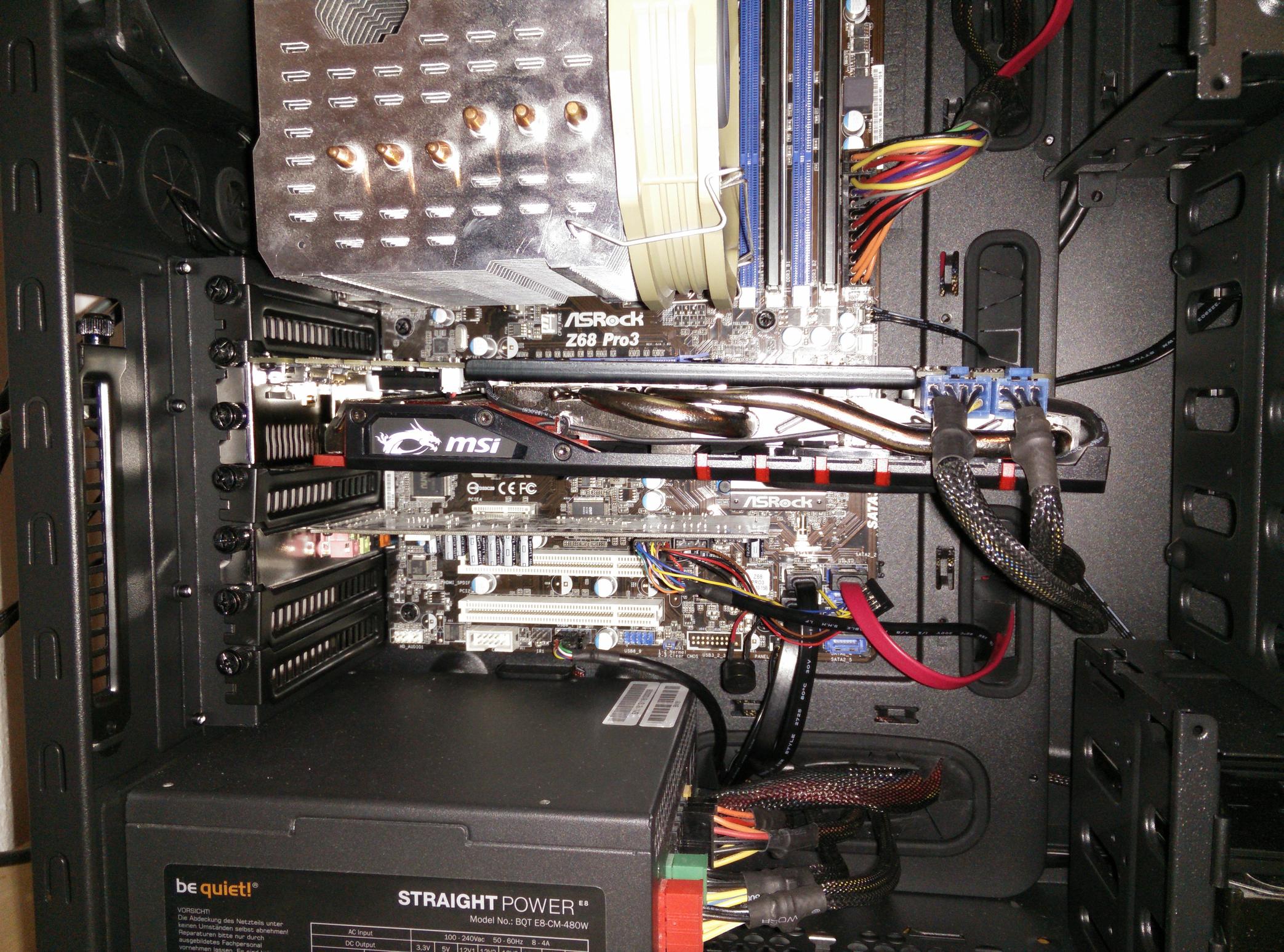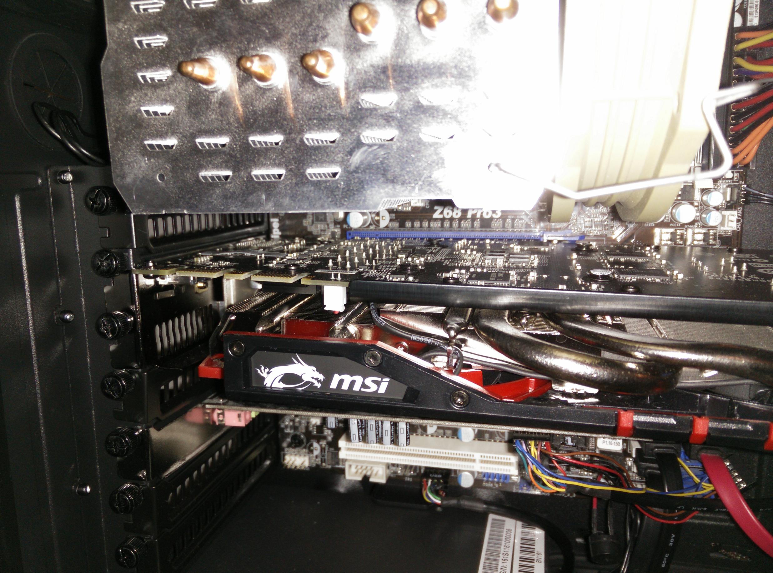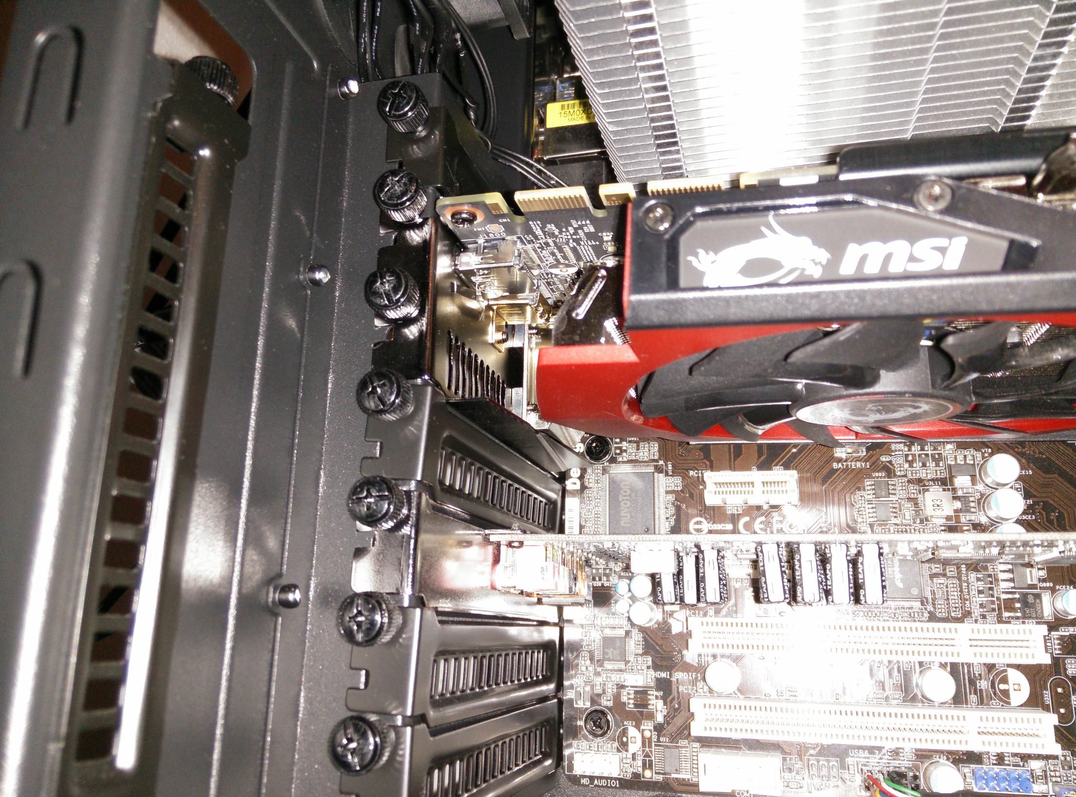 Meine Grafikkarte hängt durch ihr hohes Gewicht so weit durch, dass der Monitor das Signal verliert.